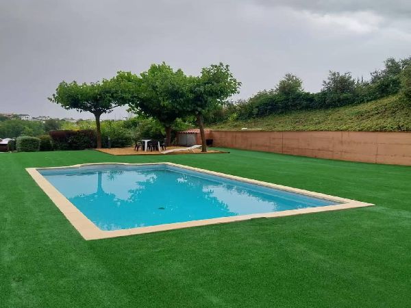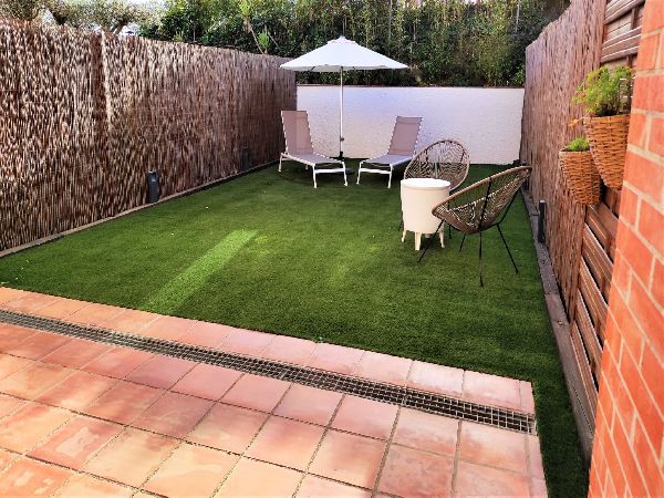 150 m2 construïts, jardí de 50 m2, obra nova, urbanitzat, fàcil accés, bones vistes, 1 hab. individual, 2 hab. doble, 2 banys, 1 bany auxiliar, parquet, acabats d'alumini, aigua, llum, gas, calefacció, aire condicionat, exterior, cuina equipada, amoblat, armaris encastats, llar de foc, vidres dobles, safreig, planta baixa, jardí, piscina, garatge, asolellat, porter automàtic, porta blindada, despeses comunitat, sistema de seguretat